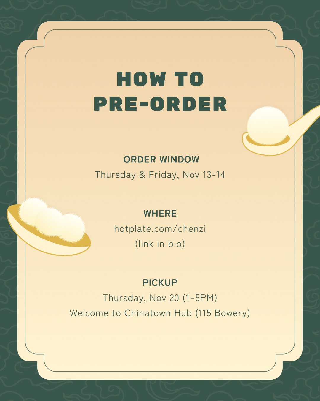 π Pickup: Thursday, November 20th between 1β5PM @ Welcome to Chinatown (115 Bowery)